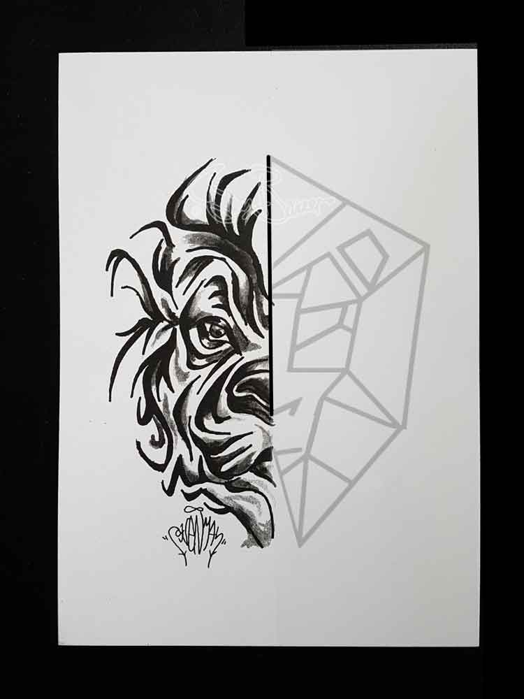 Door mijn lange interesse in en kennis van tattoeëren, gecombineerd met kennis van tekenen en schilderen, kan ik ontwerpen maken in veel stijlen.